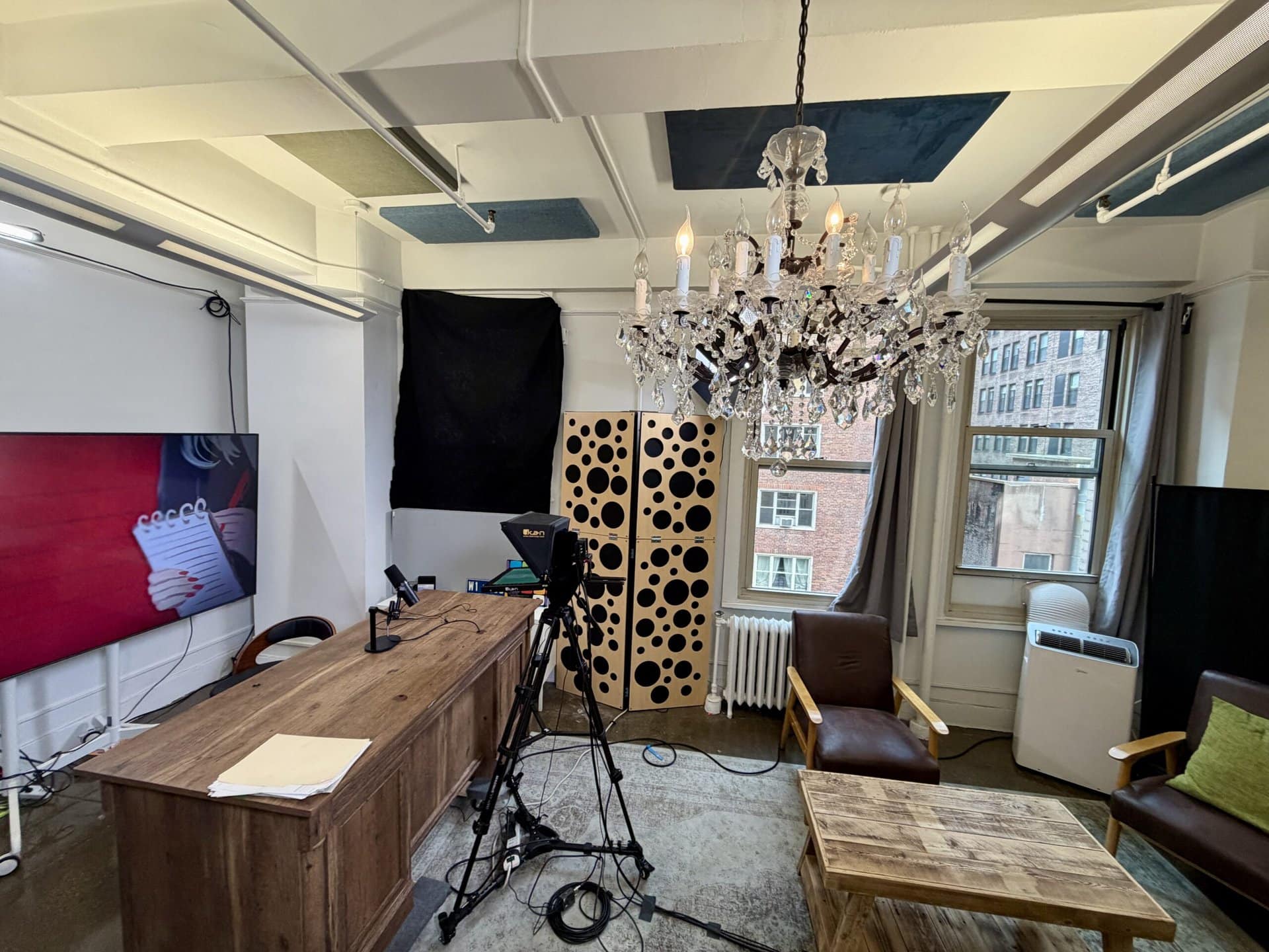 Whether you’re recording a high-end podcast, filming a corporate video, or going live for a cable news hit, The Chandelier Room is your all-in-one solution.